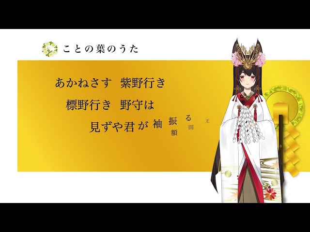 あかねさす 紫野行き 標野行き 野守は 見ずや君が袖振る 額田王 ( ぬかたのおおきみ ) [ 首の意味 ] 首の意は、お慕わしいあなたが紫草の群生する蒲生のこの御料地をあちこちとお歩きになって、…