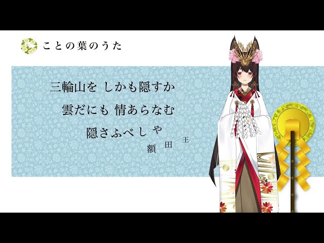 三輪山を しかも隠すか 雲だにも 情あらなむ 隠さふべしや 額田王 ( ぬかたのおおきみ ) [ 首の意味 ] 首の意は、三輪山をもっと見たいのだが、雲が隠してしまった。そんなにも隠すのか、たとえくも…