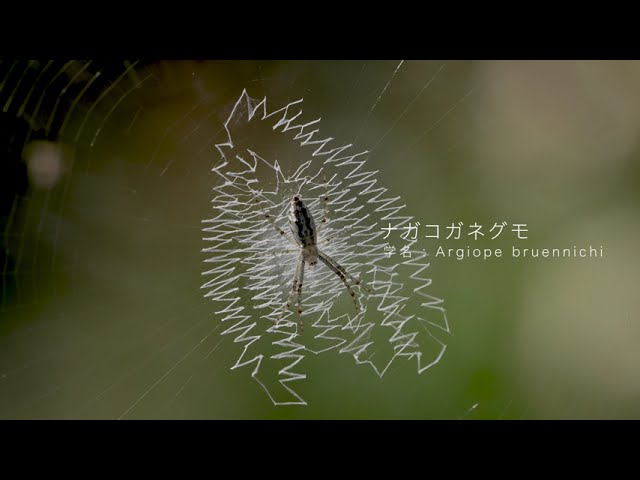 名前 : ナガコガネグモ / オス(長黄金蜘蛛) 英名 : Wasp spider orb-weaving spider 分類 : クモ目 コガネグモ科 学名 : Argiope bruennichi 分布域 : 北海道から南西諸島(沖縄島まで)に広く分…